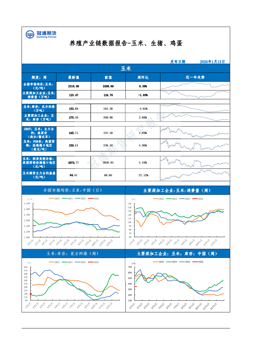 冠通期货-养殖产业链数据报告:玉米、生猪、鸡蛋-260113