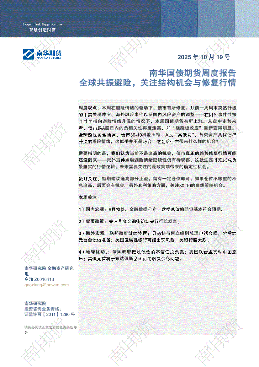 南华期货-国债期货周度报告:全球共振避险,关注结构机会与修复行情-251019