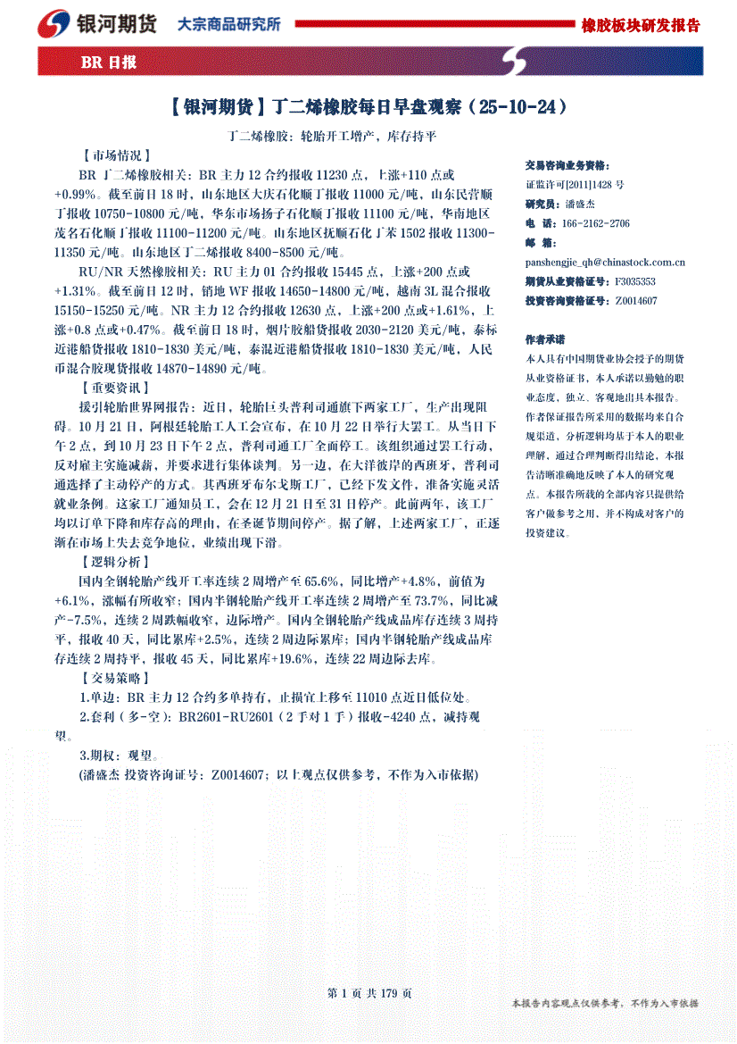 银河期货-丁二烯橡胶每日早盘观察-251024