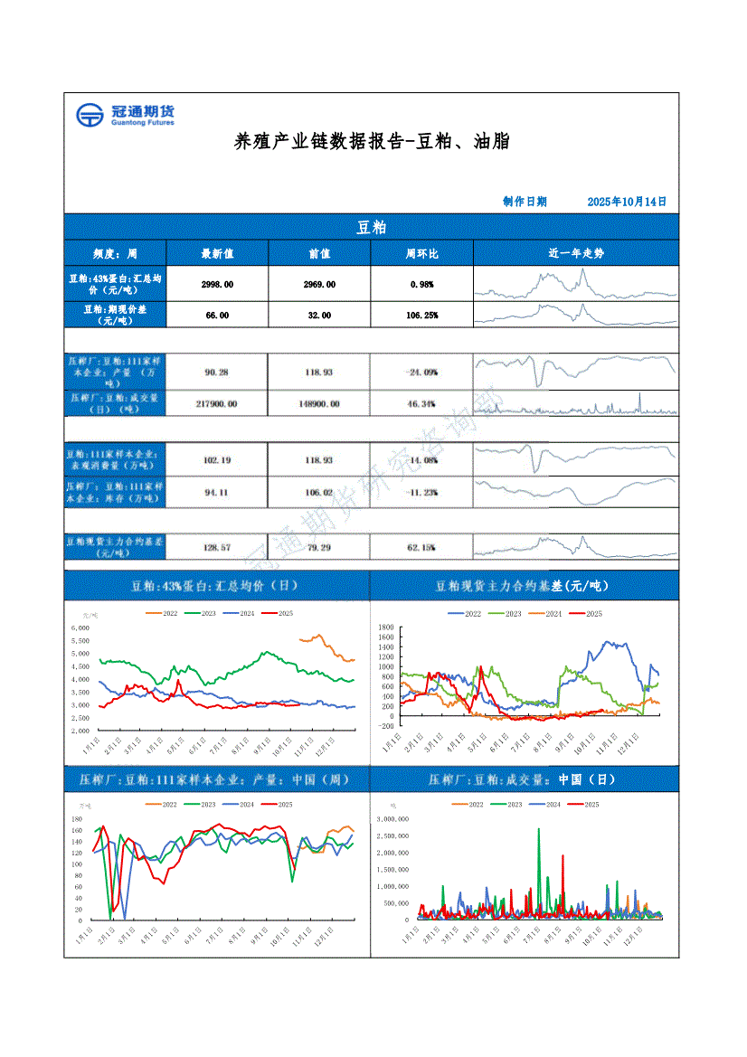 冠通期货-养殖产业链数据报告~豆粕、油脂-251014
