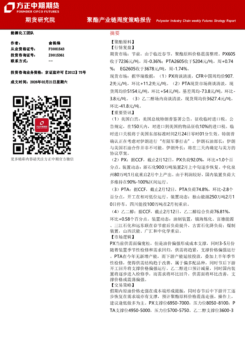 方正中期期货-聚酯产业链周度策略报告-260221