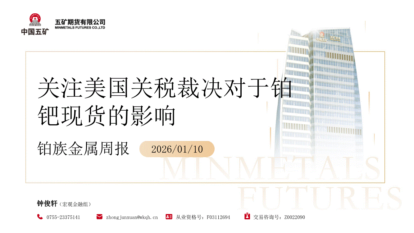 五矿期货-铂族金属周报:关注美国关税裁决对于铂钯现货的影响-260110