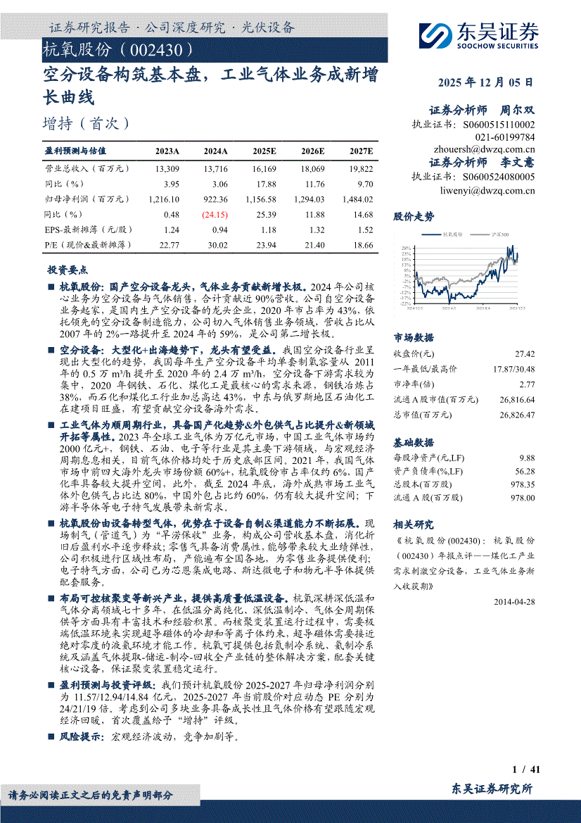 杭氧股份:东吴证券-杭氧股份-002430-空分设备构筑基本盘,工业气体业务成新增长曲线-251205