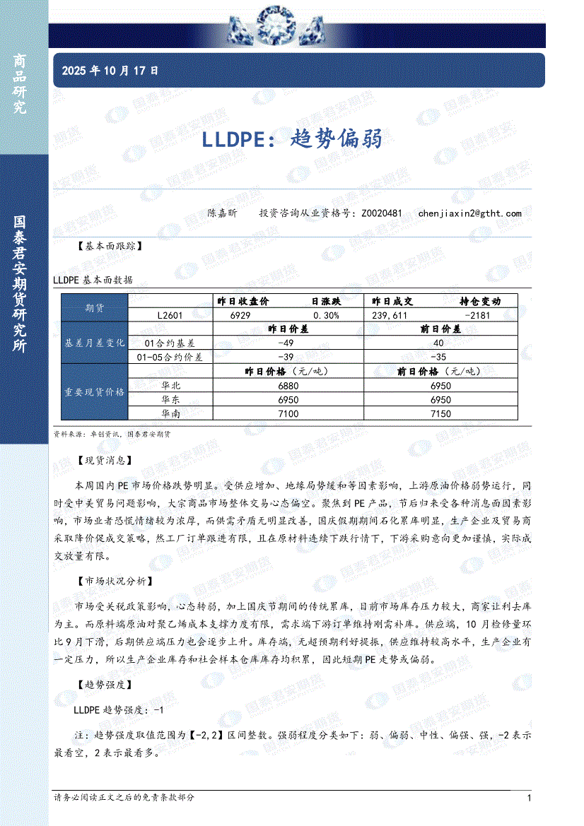 国泰君安期货-LLDPE:趋势偏弱-251015