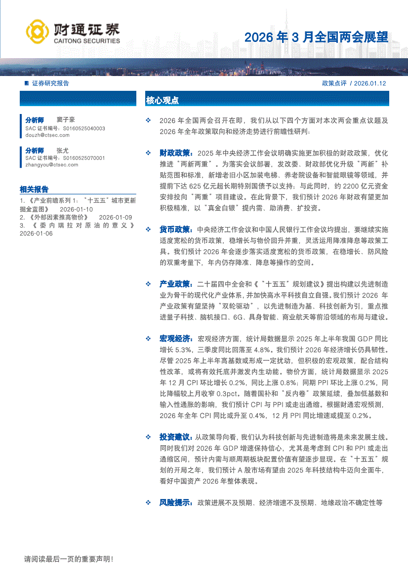 诚通证券-2026年3月宏观及大类资产月报:聚焦全国两会,美伊冲突爆发-260301