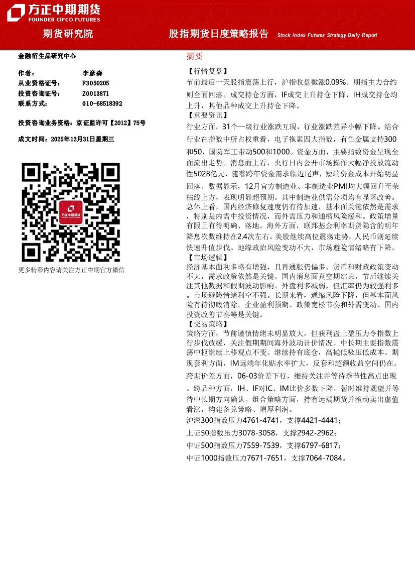 方正中期期货-股指期货日度策略报告-251231