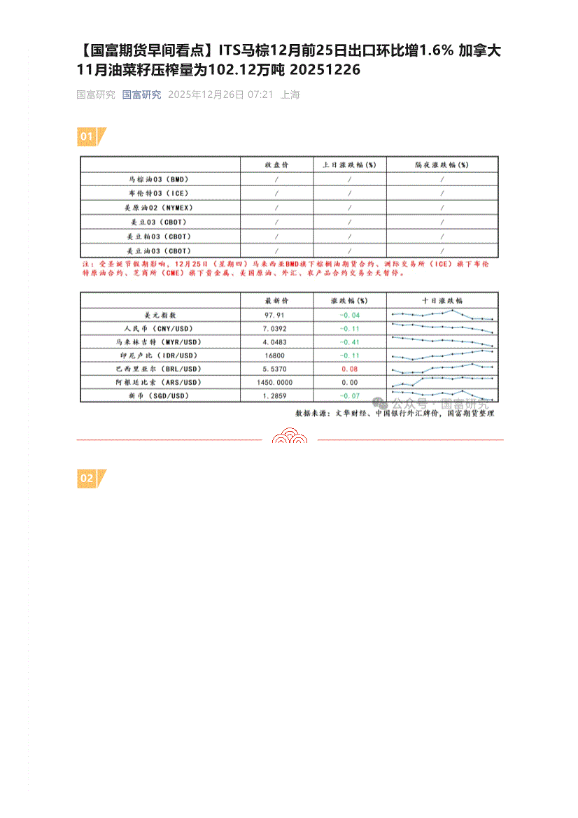 国富期货-【早间看点】ITS马棕12月前25日出口环比增1.6%,加拿大11月油菜籽压榨量为102.12万吨-251216