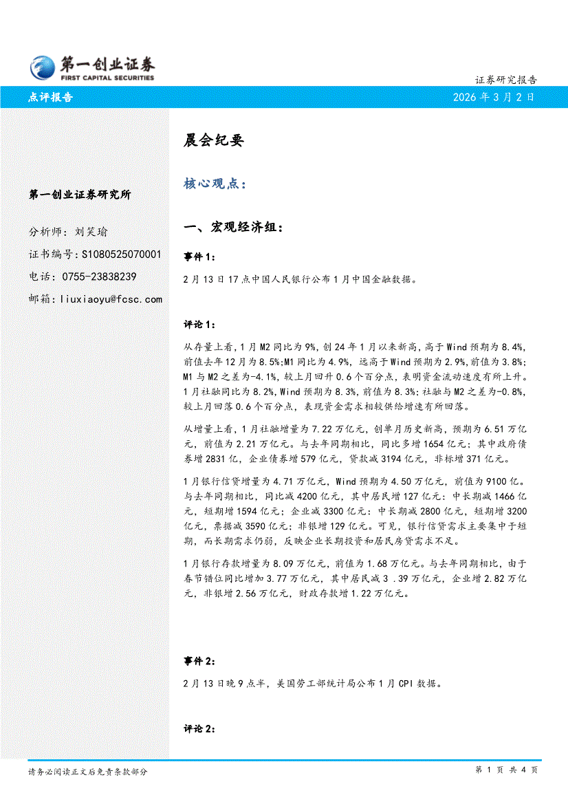 第一创业-晨会纪要-260302