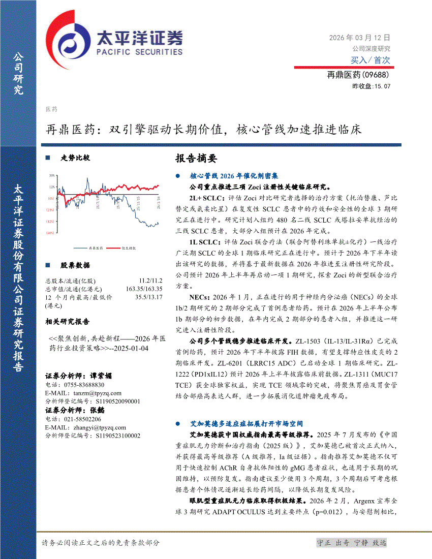 再鼎医药:太平洋证券-再鼎医药-9688.HK-双引擎驱动长期价值,核心管线加速推进临床-260312