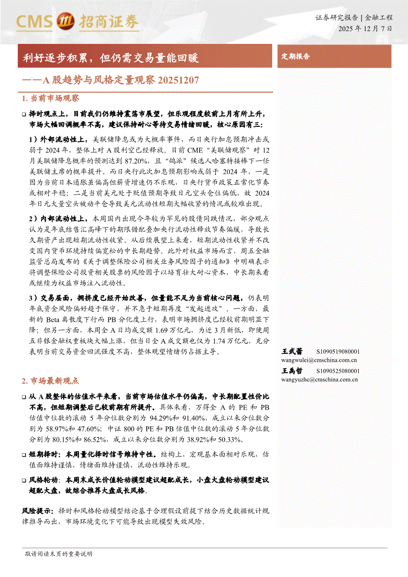 招商证券-A股趋势与风格定量观察:利好逐步积累,但仍需交易量能回暖-251207