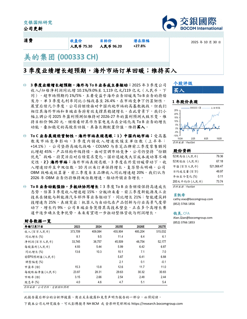 美的集团:交银国际-美的集团-000333-3季度业绩增长超预期,海外市场订单回暖;维持买入-251030