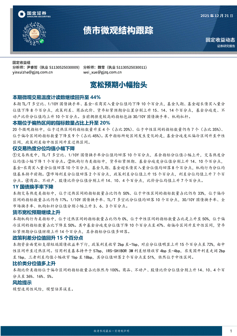 国金证券-债市微观结构跟踪:宽松预期小幅抬头-251221