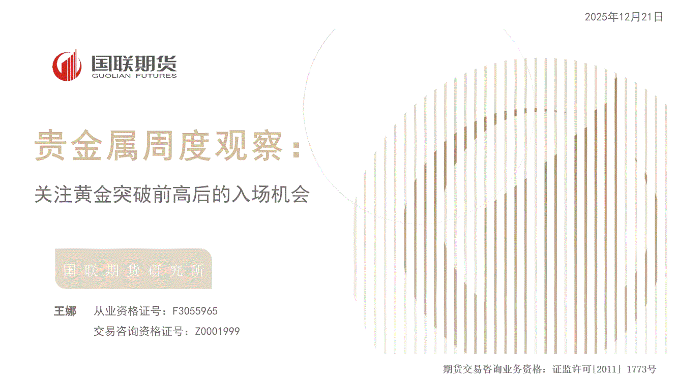 国联期货-贵金属周度观察:关注黄金突破前高后的入场机会-251221