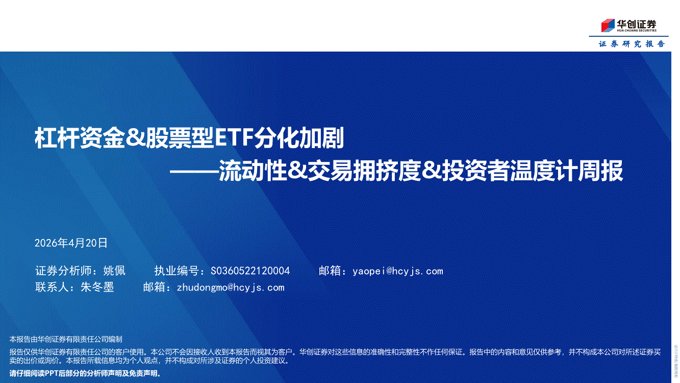 华创证券-流动性&交易拥挤度&投资者温度计周报:杠杆资金&股票型ETF分化加剧-260420