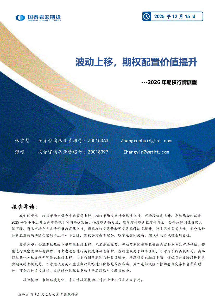 国泰君安期货-2026年期权行情展望:波动上移,期权配置价值提升-251215