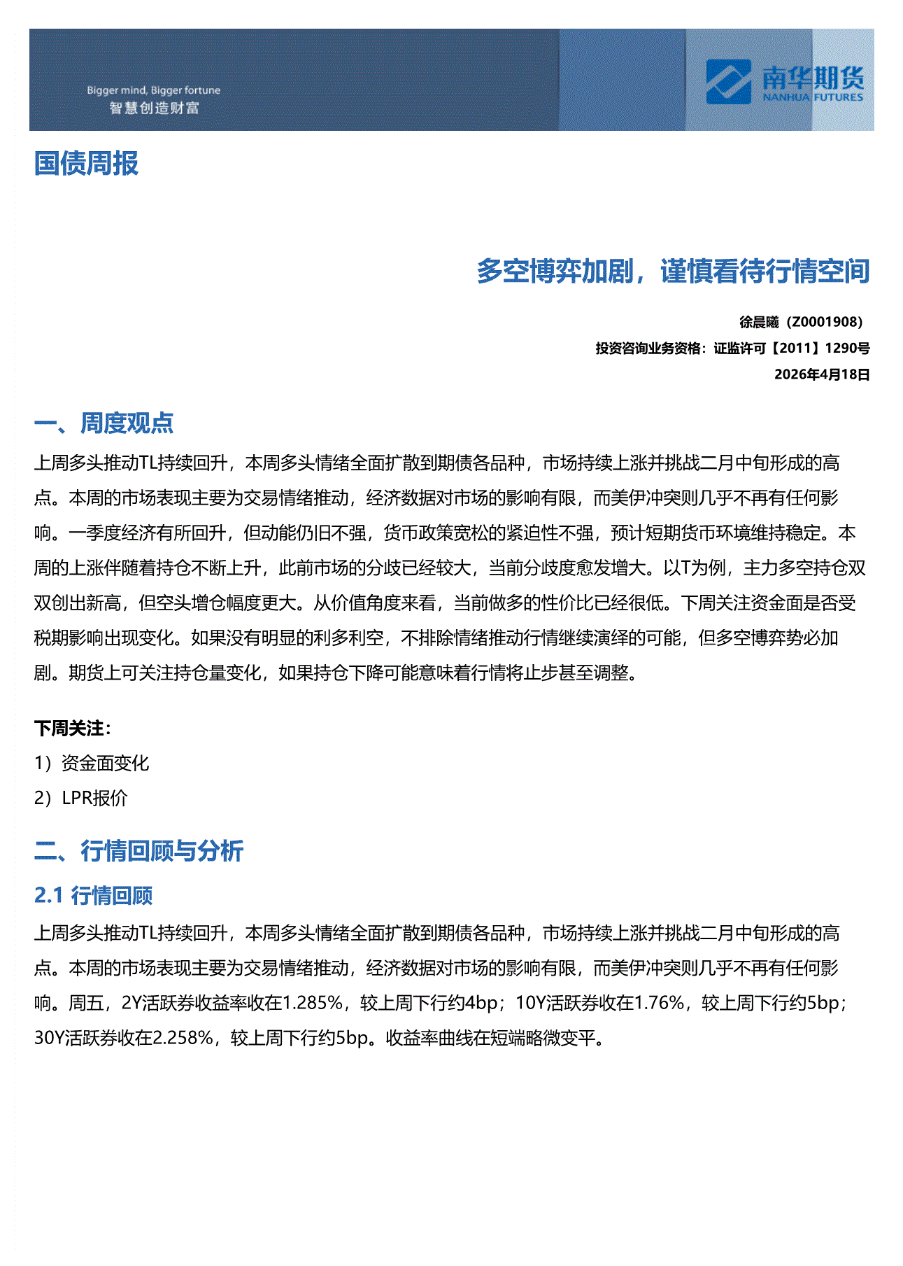 南华期货-国债周报:多空博弈加剧,谨慎看待行情空间-260418