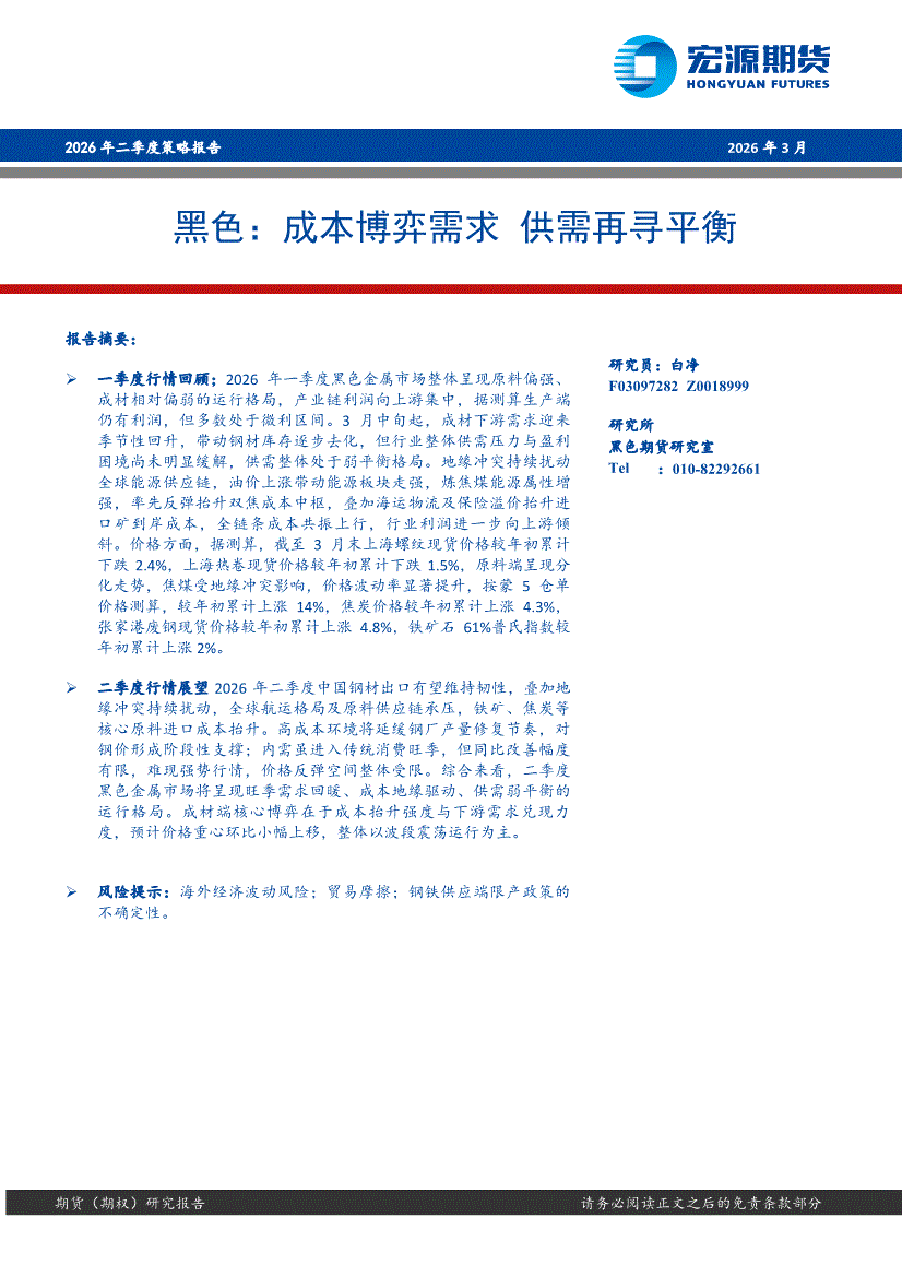 宏源期货-黑色:成本博弈需求,供需再寻平衡-260331