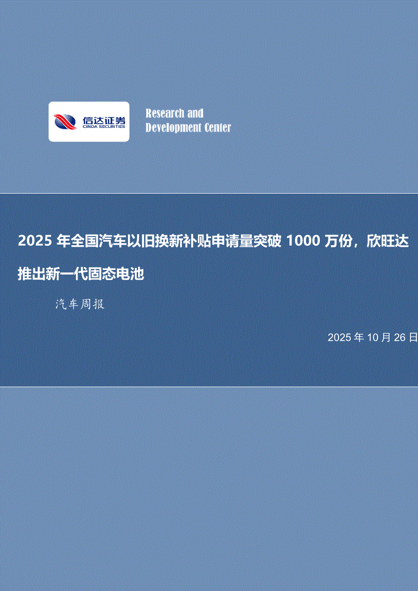 汽车行业:信达证券-汽车行业周报:2025年全国汽车以旧换新补贴申请量突破1000万份,欣旺达推出新一代固态电池-251026