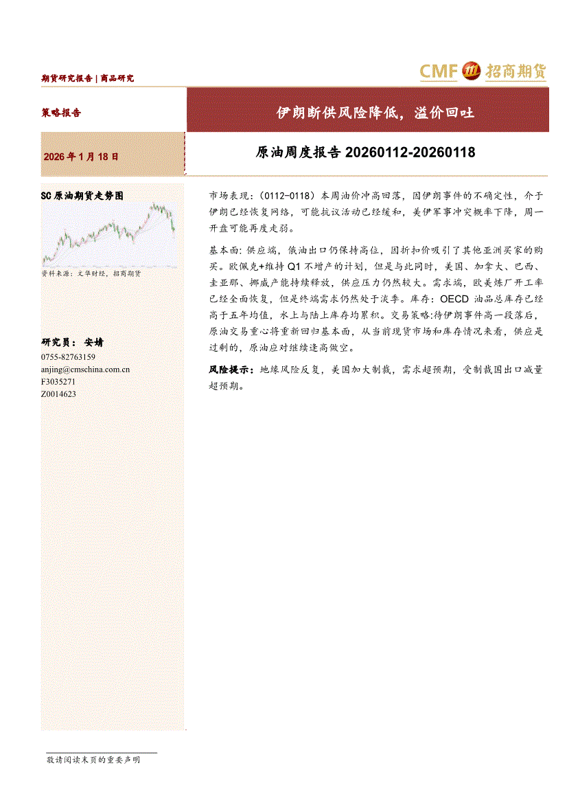 招商期货-原油周度报告:伊朗断供风险降低,溢价回吐-260118