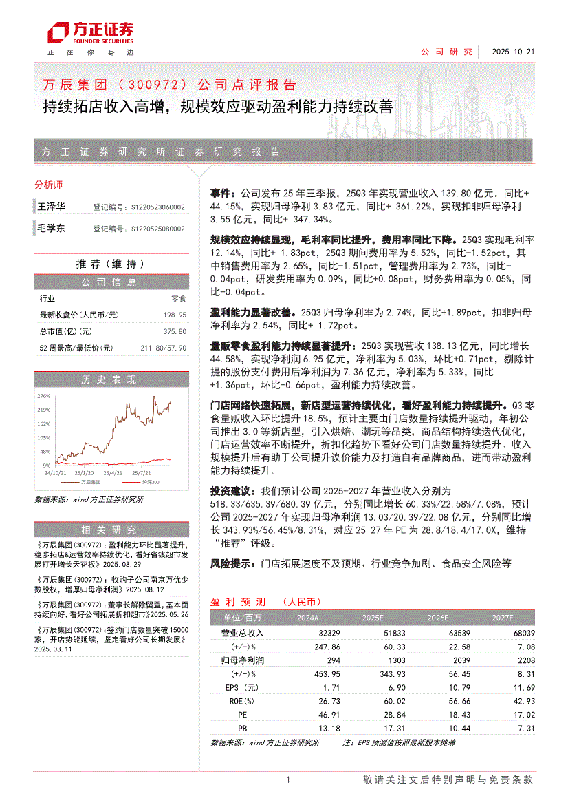 万辰集团:方正证券-万辰集团-300972-公司点评报告:持续拓店收入高增,规模效应驱动盈利能力持续改善-251021