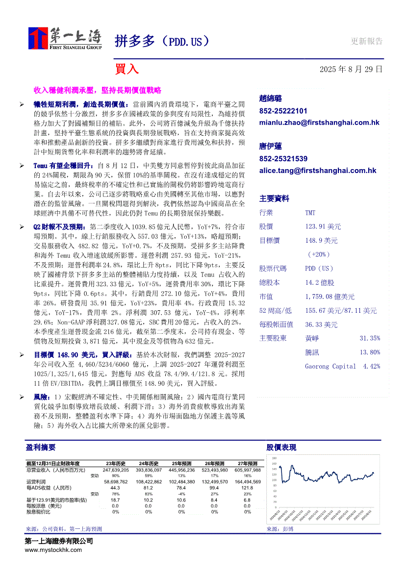 拼多多:第一上海-拼多多-PDD.US-收入稳健利润承压,坚持长期价值战略(繁体)-250829