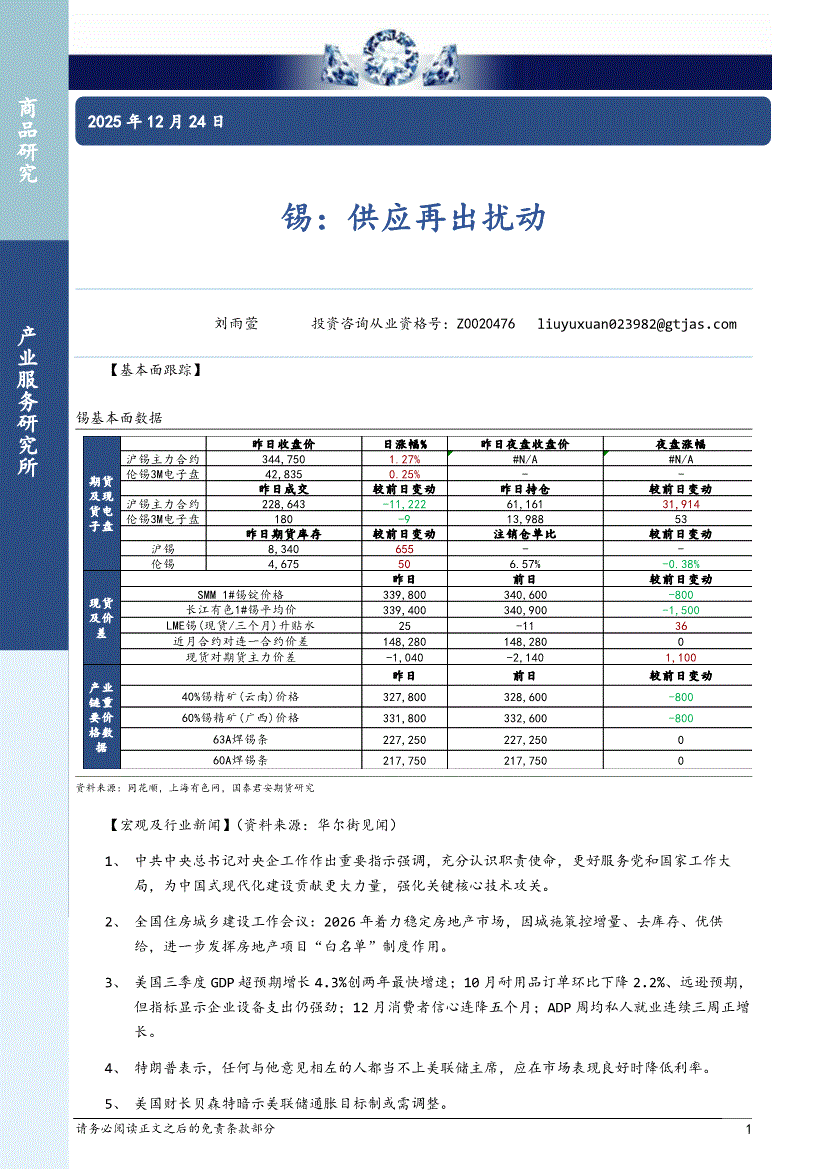 国泰君安期货-锡:供应再出扰动-251224