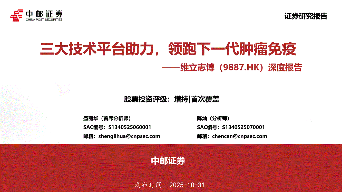 维立志博:中邮证券-维立志博-9887.HK-深度报告:三大技术平台助力,领跑下一代肿瘤免疫-251031