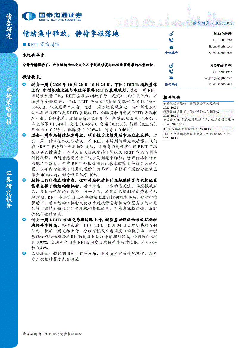 国泰海通证券-REIT策略周报:情绪集中释放,静待季报落地-251025