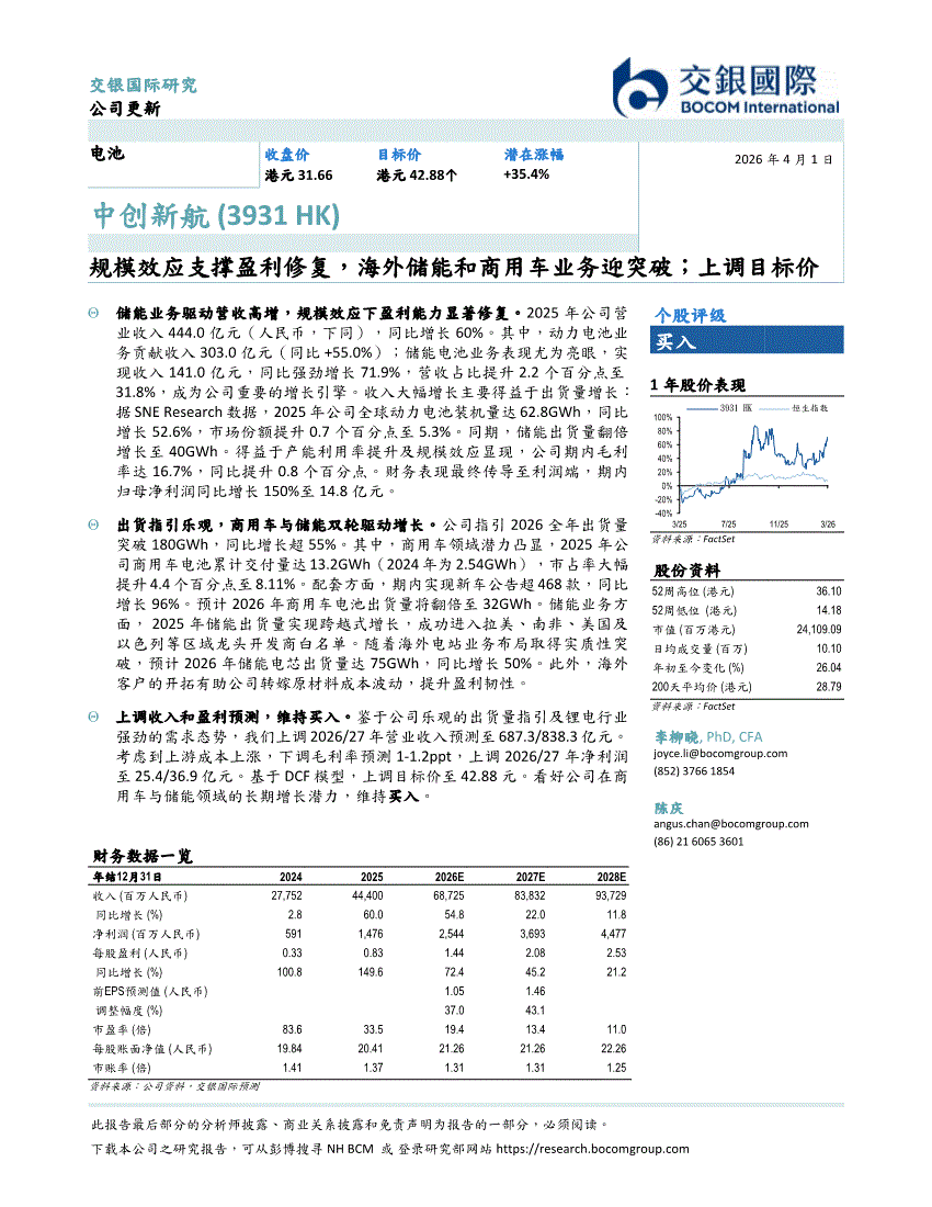 中创新航:交银国际-中创新航-3931.HK-规模效应支撑盈利修复,海外储能和商用车业务迎突破;上调目标价-260401