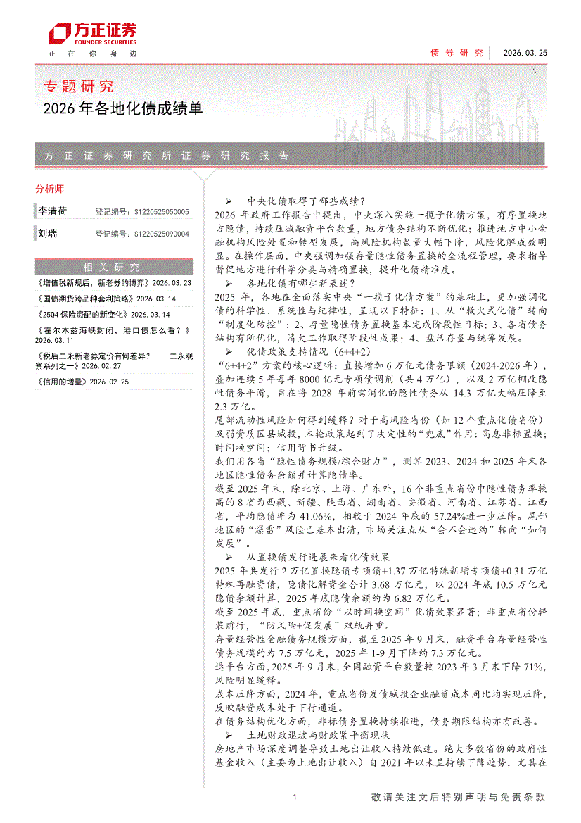 方正证券-专题研究:2026年各地化债成绩单-260325