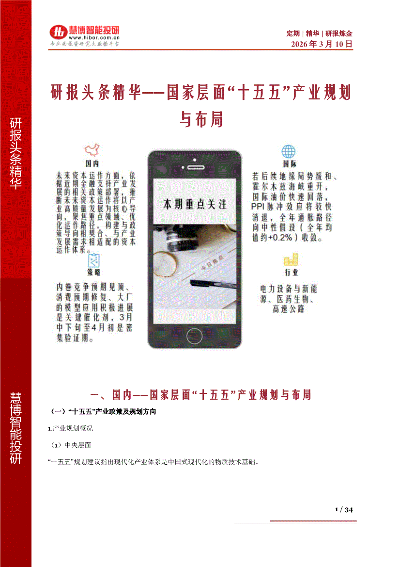 慧博智能投研-慧博研报炼金之研报头条精华:国家层面“十五五”产业规划与布局-260310