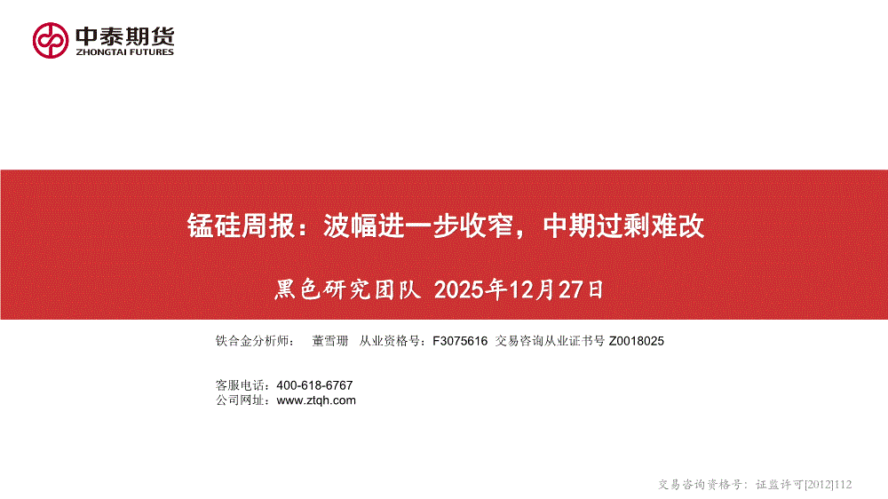 中泰期货-锰硅周报:波幅进一步收窄,中期过剩难改-251227