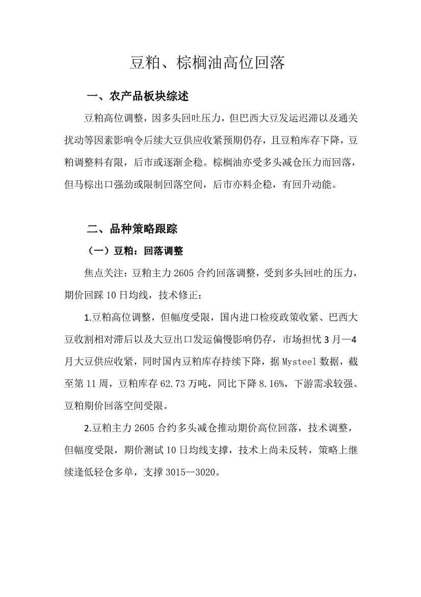 天富期货-豆粕冲高回落,棕油劲升-260312