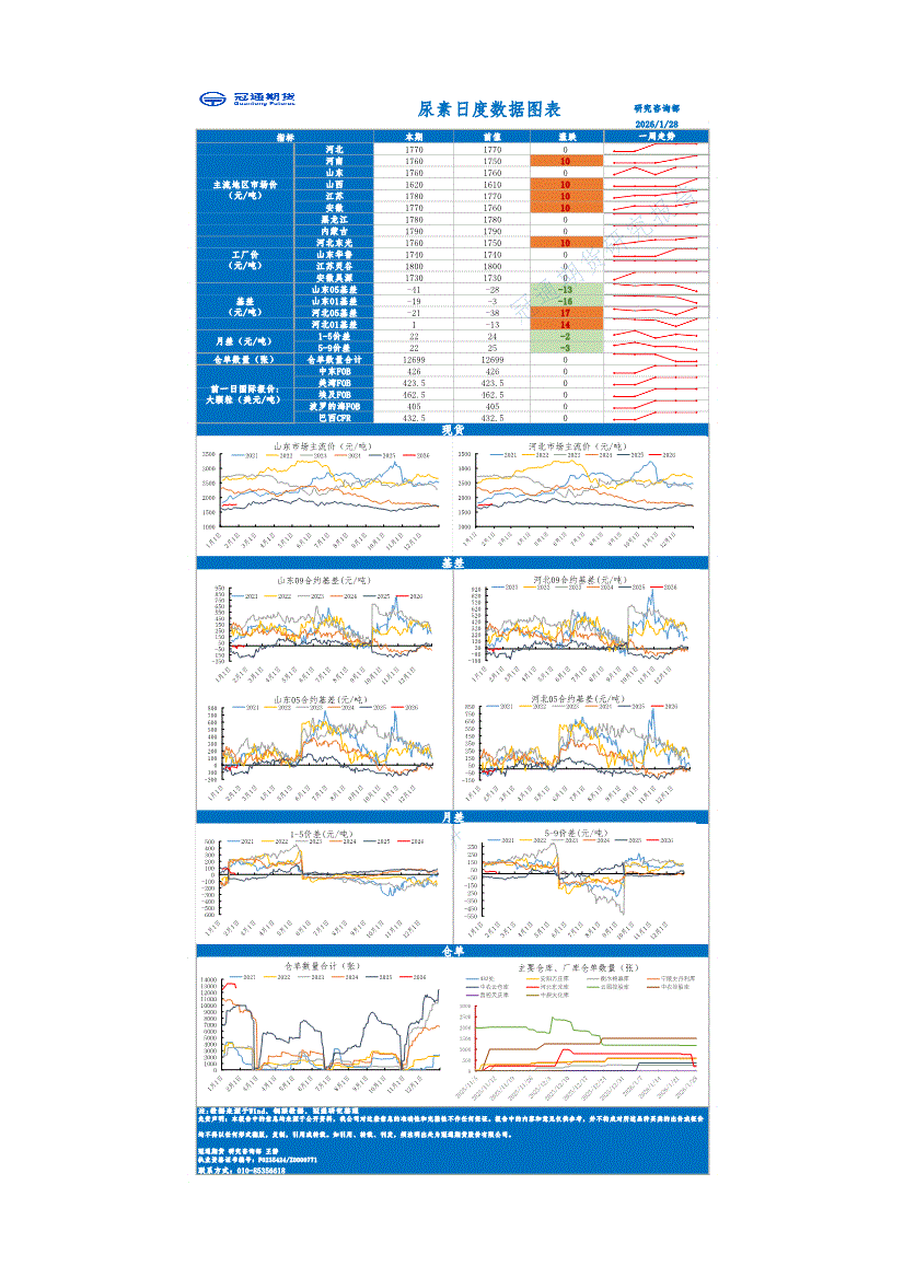 冠通期货-尿素日度数据图表-260128
