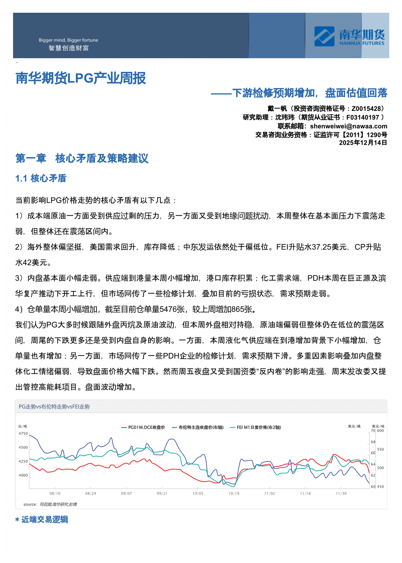 南华期货-LPG产业周报:下游检修预期增加,盘面估值回落-251214