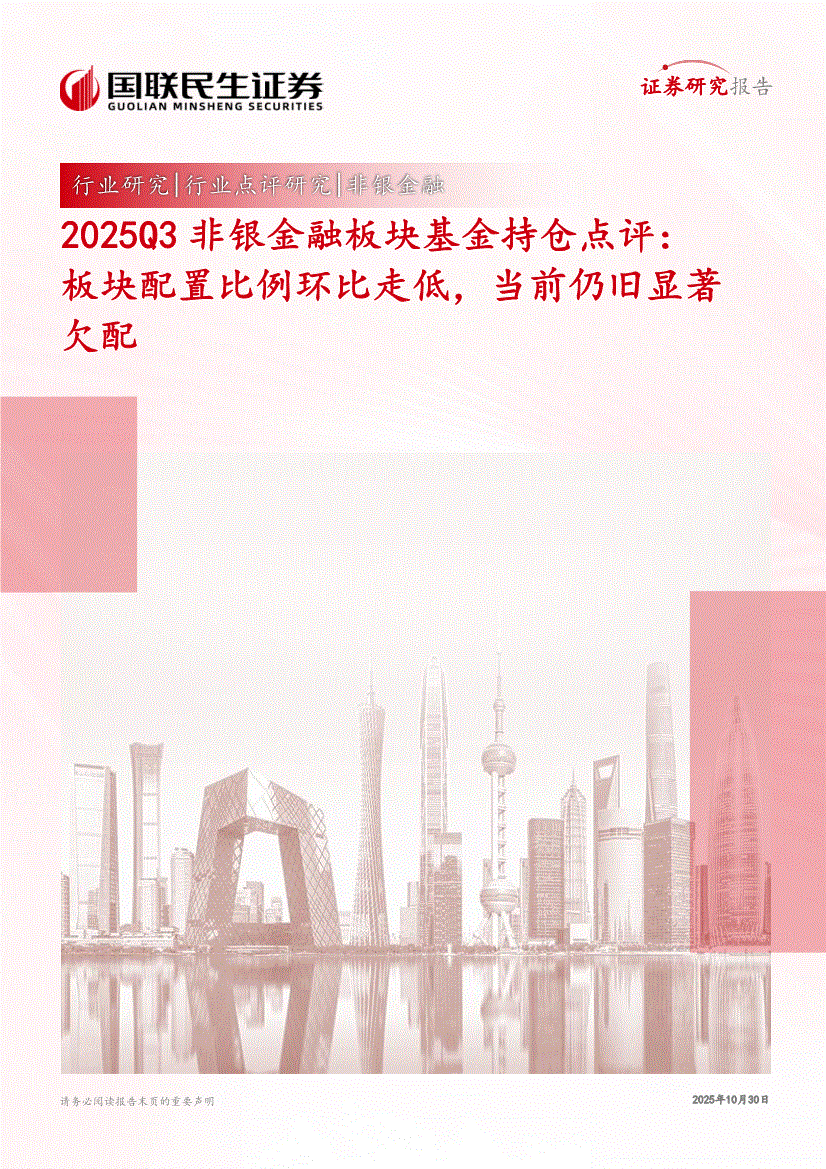 非银金融行业:国联民生证券-2025Q3非银金融行业板块基金持仓点评:板块配置比例环比走低,当前仍旧显著欠配-251030