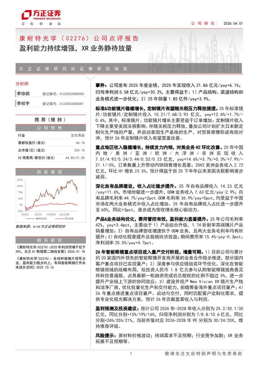 康耐特光学:方正证券-康耐特光学-2276.HK-公司点评报告:盈利能力持续增强,XR业务静待放量-260401