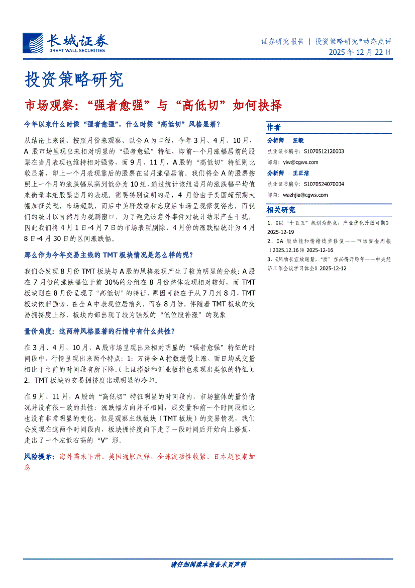 长城证券-市场观察:“强者愈强”与“高低切”如何抉择-251222