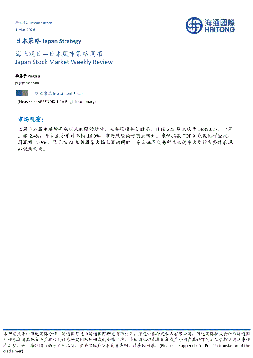 海通国际-海上观日—日本股市策略周报:油价冲击叠加日元贬值,日本股市阶段性回调-260315