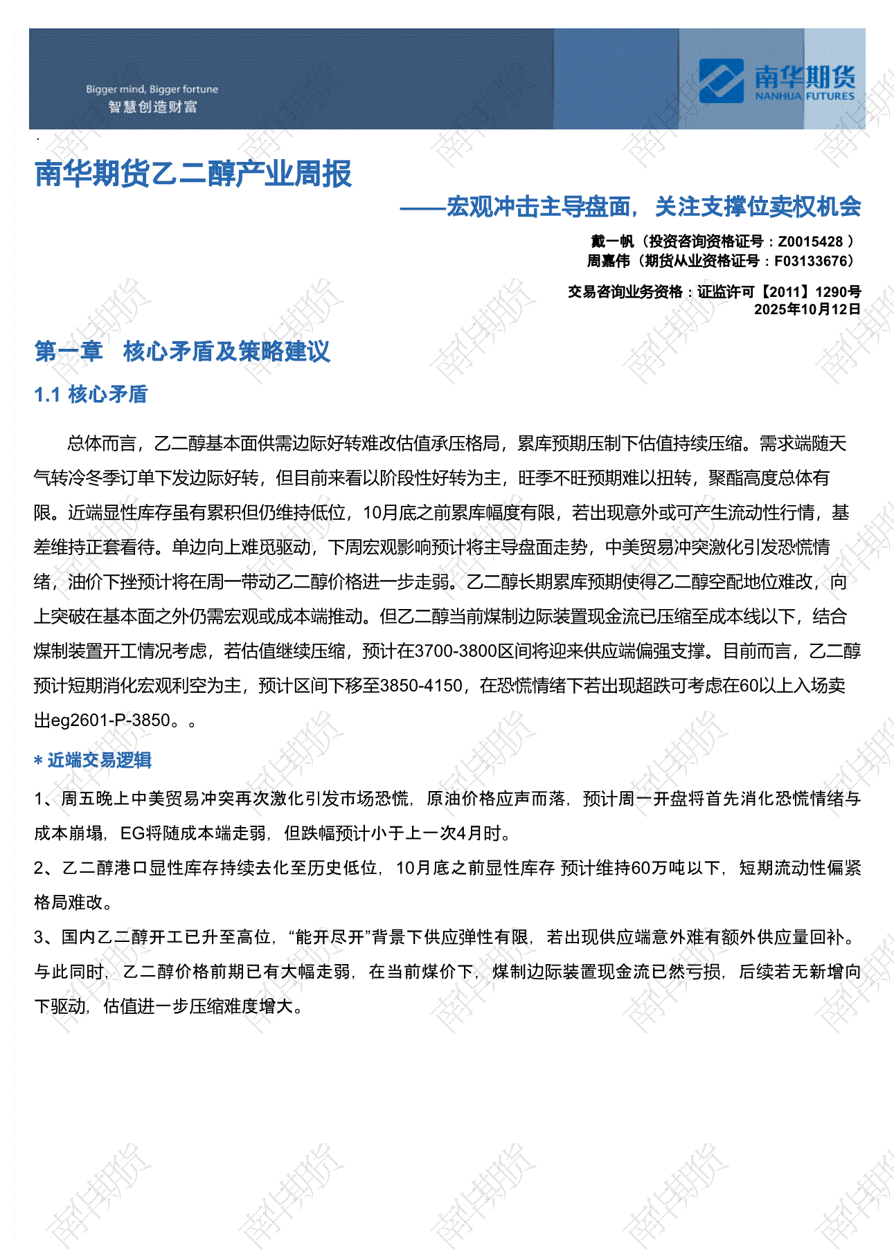 南华期货-乙二醇产业周报:宏观冲击主导盘面,关注支撑位卖权机会-251012