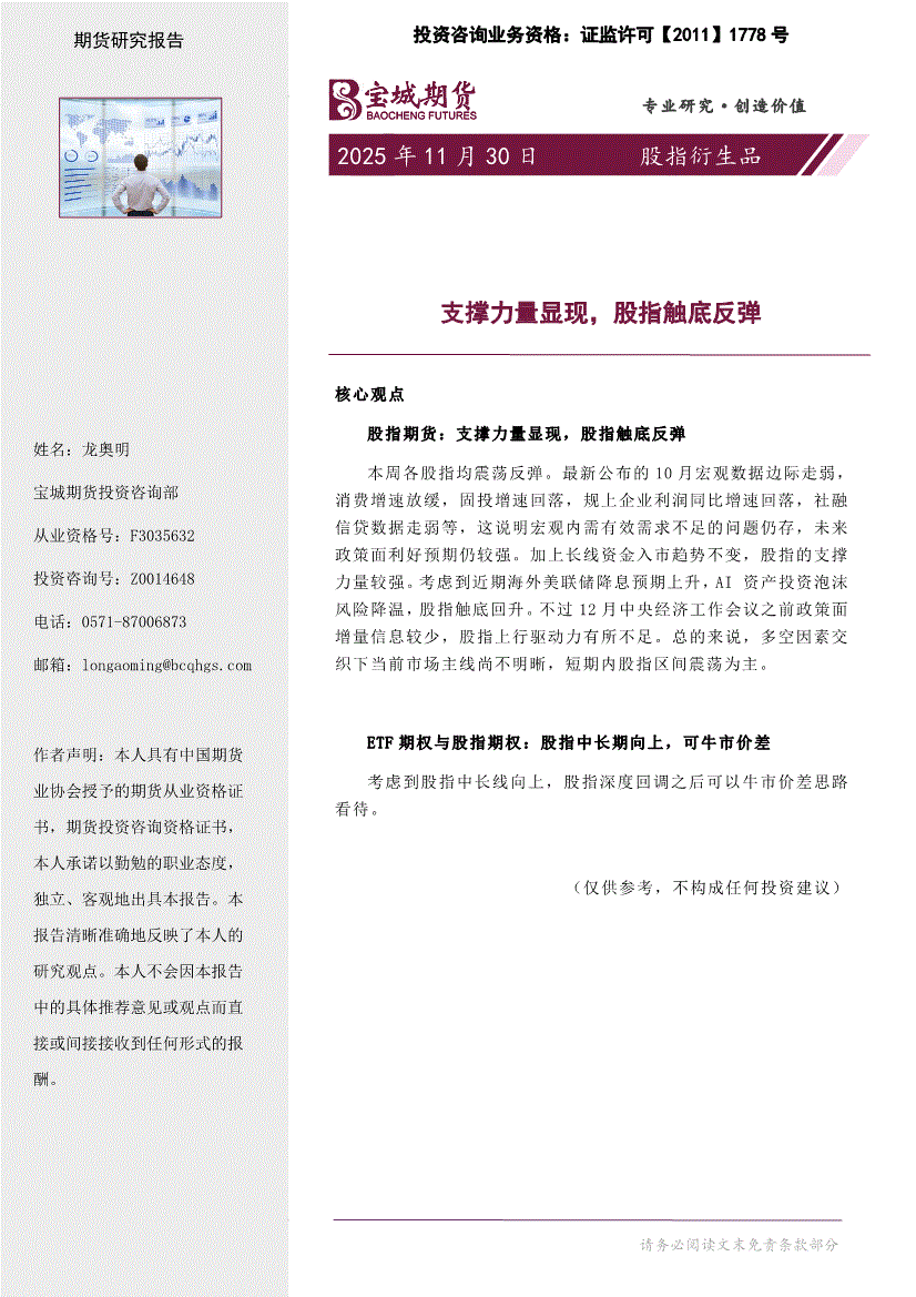 宝城期货-股指衍生品周报:支撑力量显现,股指触底反弹-251130