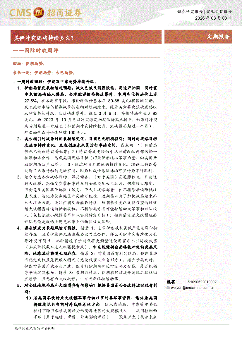 招商证券-国际时政周评:美伊冲突还将持续多久?-260308