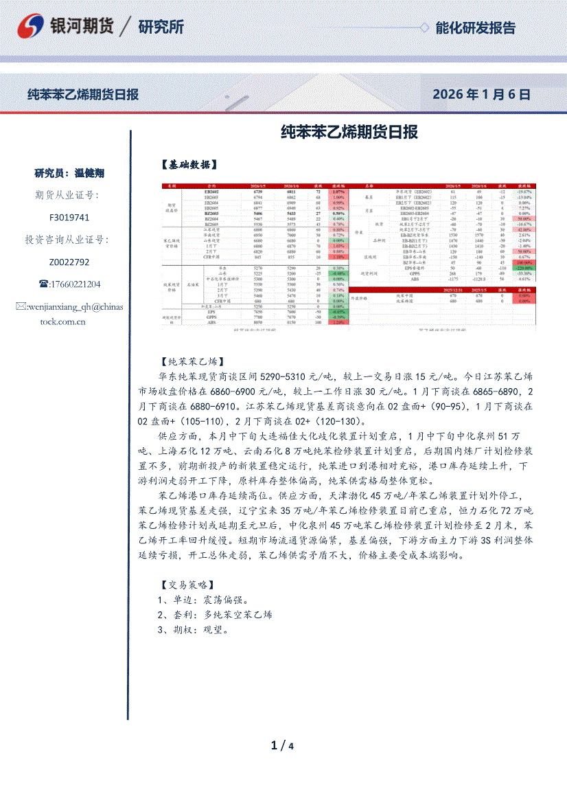 银河期货-纯苯苯乙烯期货日报-260106