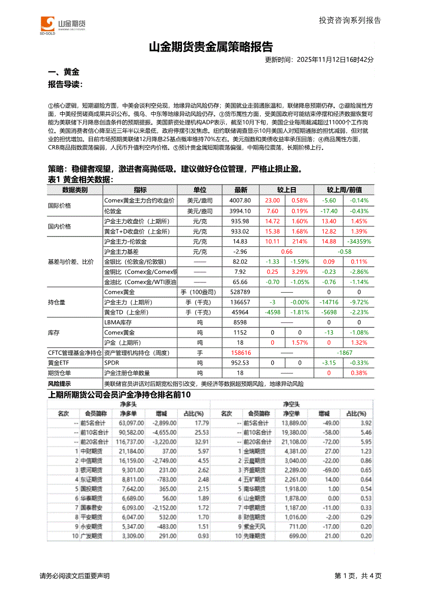 山金期货-贵金属月度策略报告:12月降息预期持续发酵,金银铂钯高位分化-251202