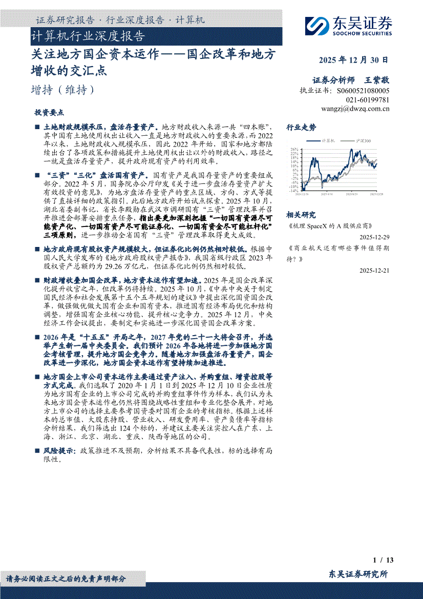 计算机行业:东吴证券-计算机行业深度报告:关注地方国企资本运作——国企改革和地方增收的交汇点-251230