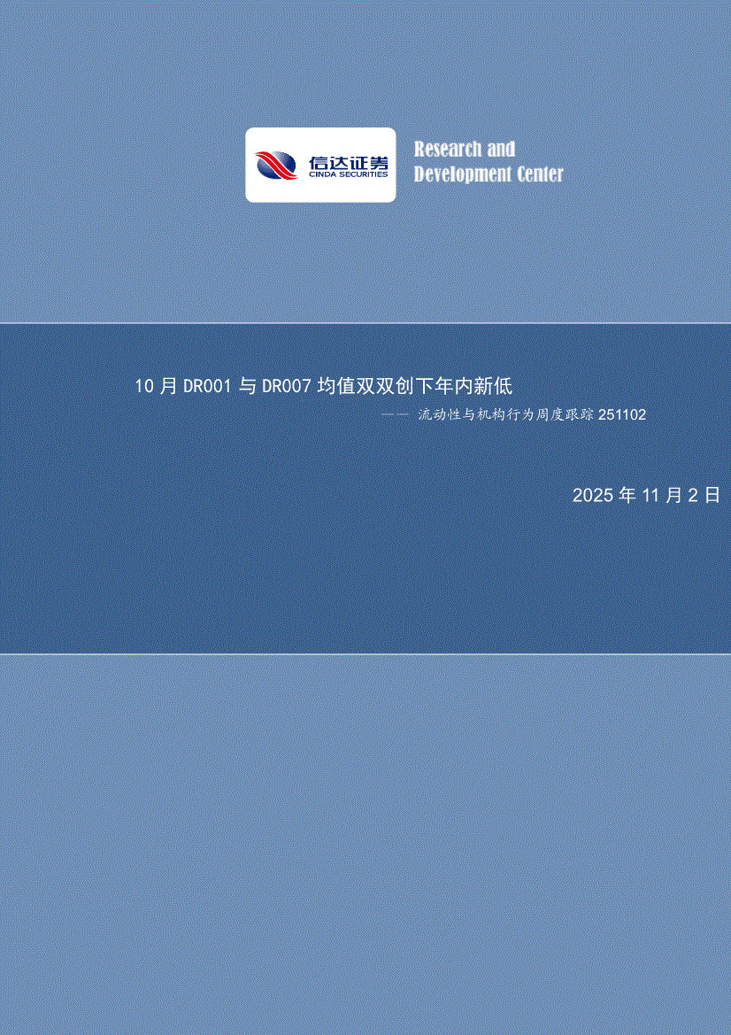 信达证券-流动性与机构行为周度跟踪:10月DR001与DR007均值双双创下年内新低-251102