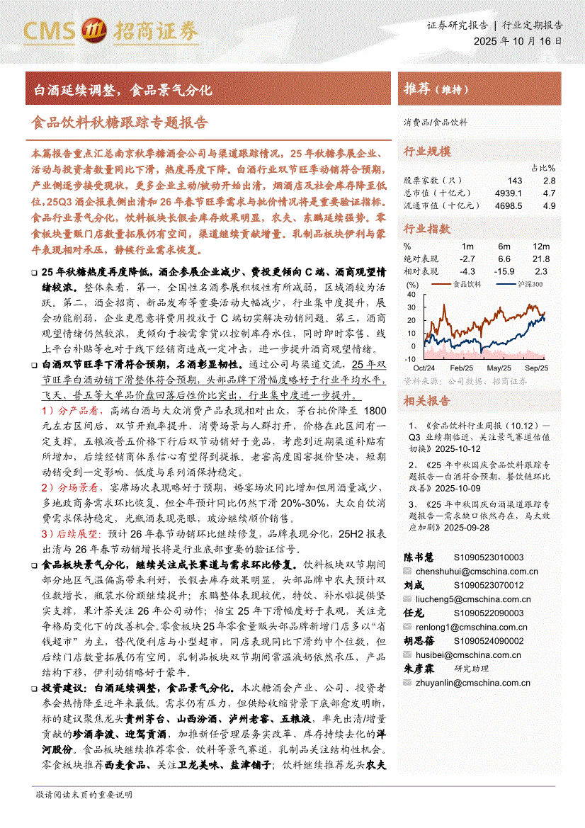 食品饮料行业:招商证券-食品饮料行业秋糖跟踪专题报告:白酒延续调整,食品景气分化-251016