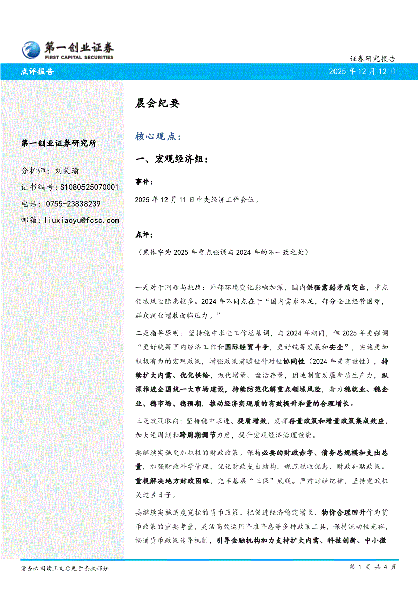 光大证券-2025年12月中央经济工作会议精神学习:充分挖掘经济潜能,苦练内功应对挑战-251211