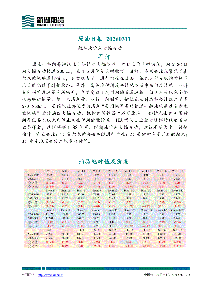 新湖期货-原油日报:短期油价或大幅波动-260311