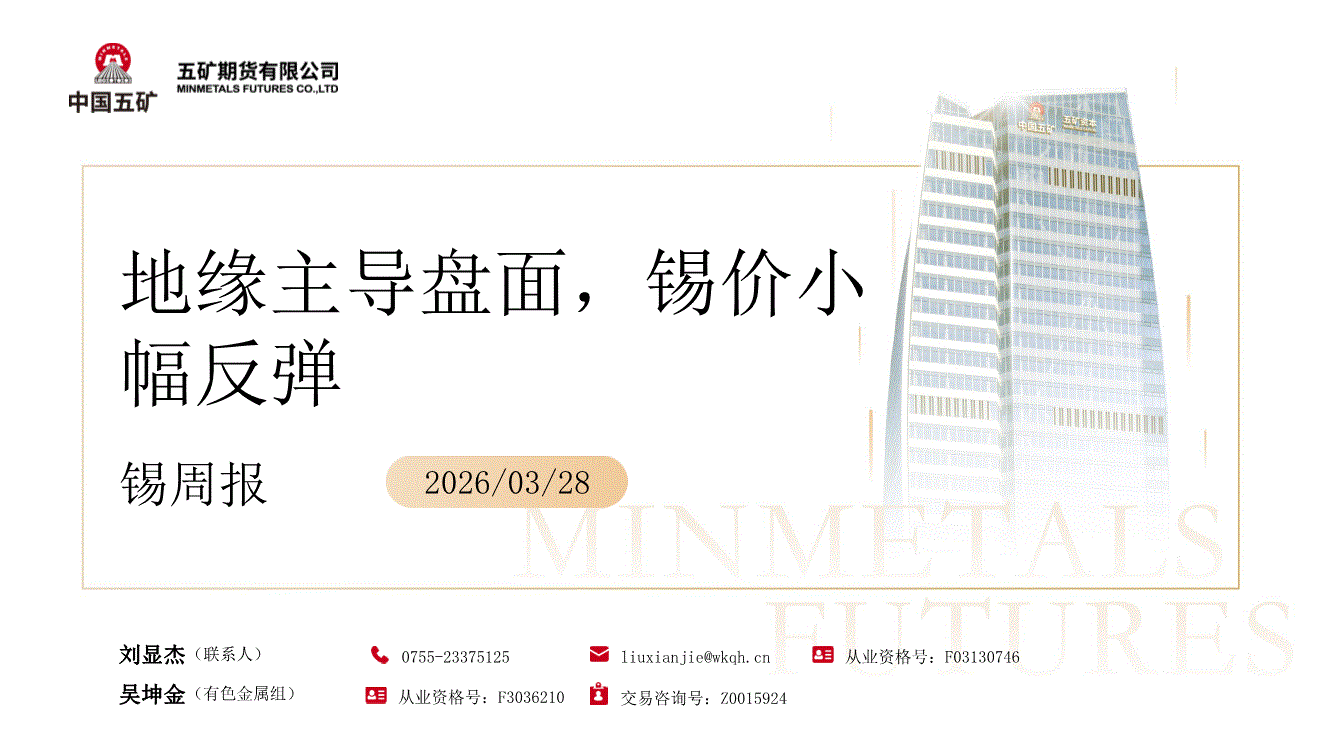 五矿期货-锡周报:地缘主导盘面,锡价小幅反弹-260328